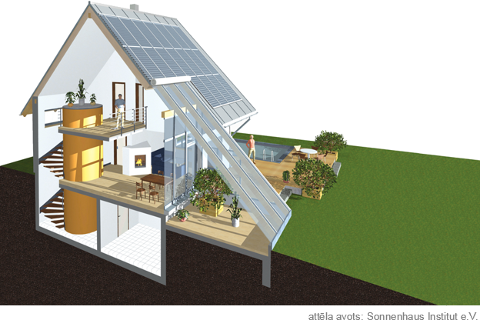 Mūsdienīgai ēkai ir ne tikai energoefektīva, energotaupoša, bet Saules apspīdētās ēkas daļas, jumta un sienu plaknes iespējams izmantot lietderīgi, tajās iestrādājot elementus, kuri ražo elektroenerģiju no Saules gaismas.